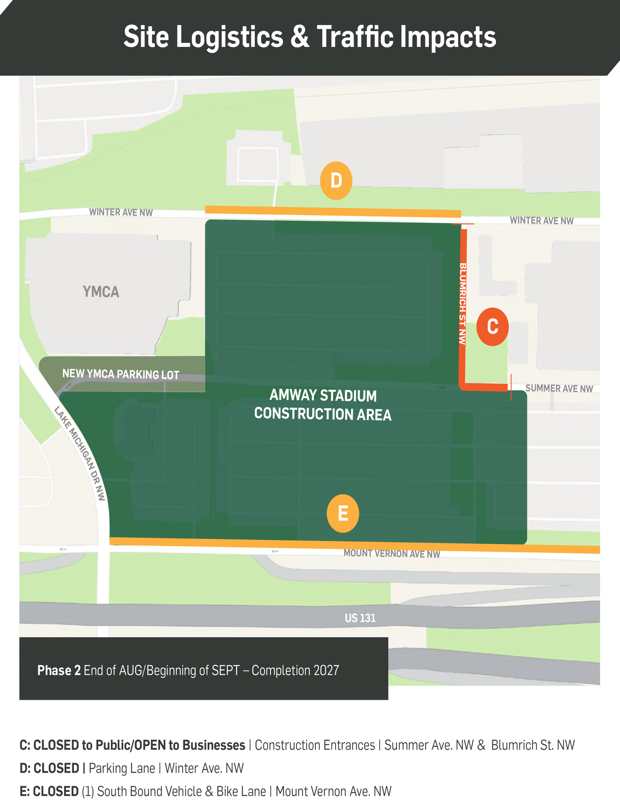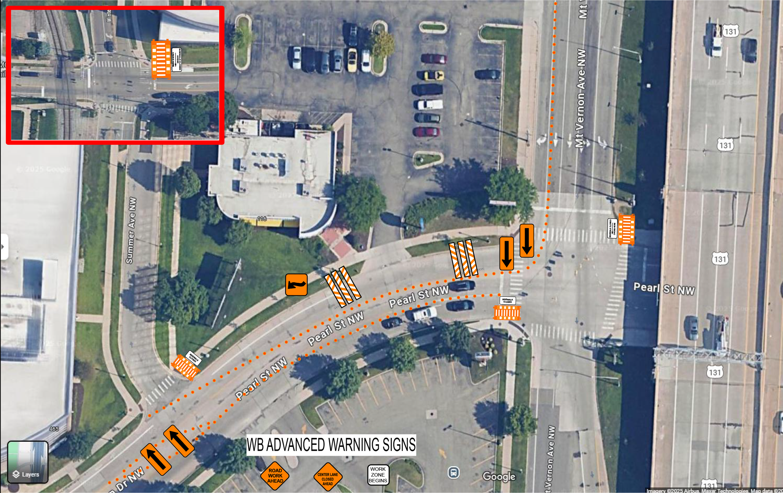 Starting May 15, Mt. Vernon between Douglas and Lake Michigan Dr. will be closed for (7) days to begin utility relocation activities. This closure will also include the off-ramp from 131 Southbound to Pearl St.