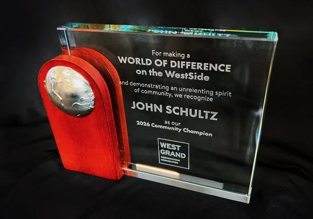 This year’s award goes to John Schultz, a familiar face and dedicated supporter of West Grand. Through his work at Bridge Street Market and his involvement in community events and meetings, John has consistently demonstrated his commitment to the neighborhood.